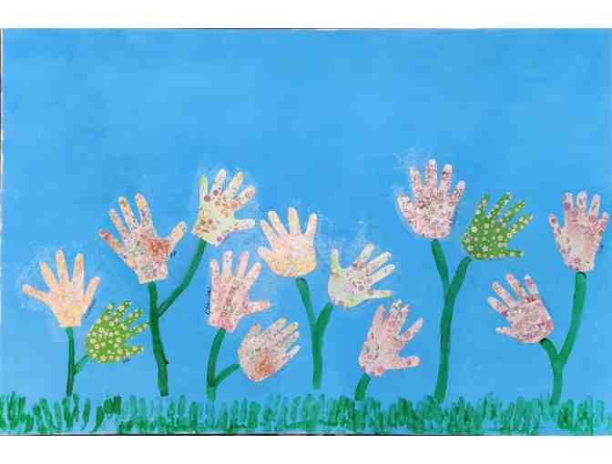 Each child is unique and adds beauty to our community. This is a 24"x36" canvas painted collaboratively by the children and includes each child's individual handprint and name, coming together to make a garden of flowers!