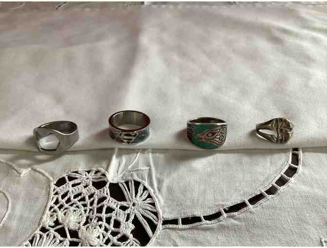 1) Turquoise and Silver, initials inside of Artist, heavy