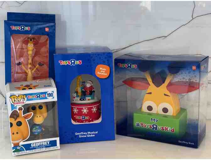 The iconic Toys-R-Us giraffe, Geoffrey, has his own line of toys! This bundle includes:
