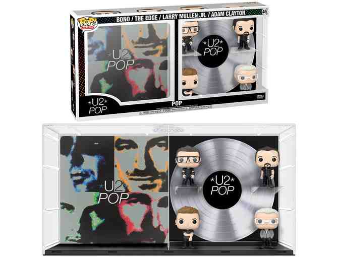 The product is a Funko Pop! Vinyl figure from the Albums Deluxe collection featuring the iconic Irish rock band U2. This particular set includes figurines of all four band members - Bono, The Edge, Larry Mullen Jr, and Adam Clayton. Designed to represent their pop music theme, this Funko Pop! Vinyl set captures the essence of the band in a collectible form. Perfect for U2 fans and collectors of music-themed memorabilia, this item showcases the band members in their distinctive style and stage presence.