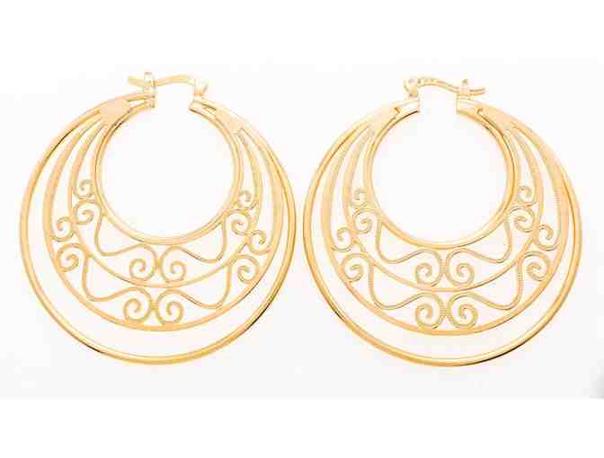 18kt Gold Overlay Large Hoop Earrings with Design