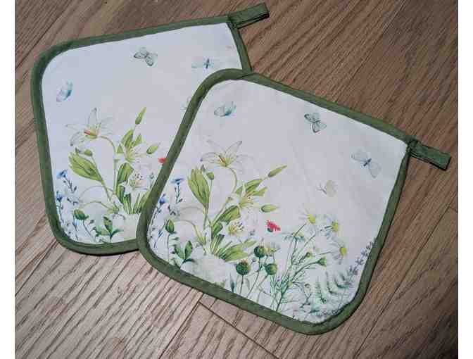 Set of two cotton/linen pot holders. Approximately 8"x8"