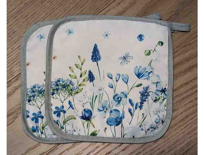 Set of two cotton/linen pot holders. Approximately 8"x8"