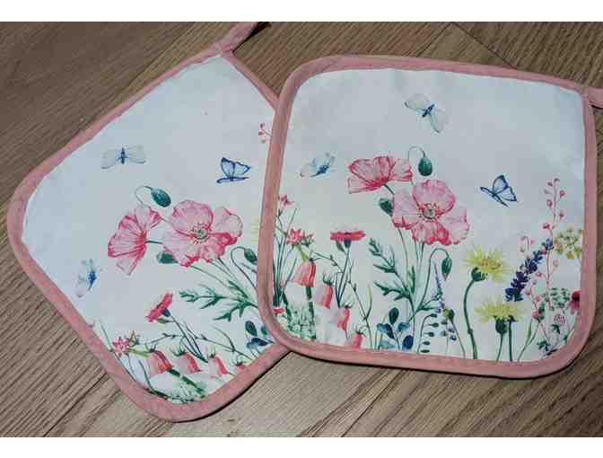 Set of two cotton/linen pot holders. Approximately 8"x8"