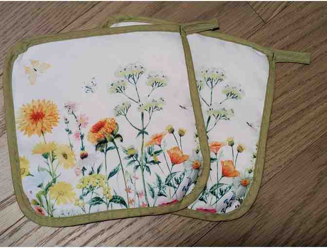 Set of two cotton/linen pot holders. Approximately 8"x8"