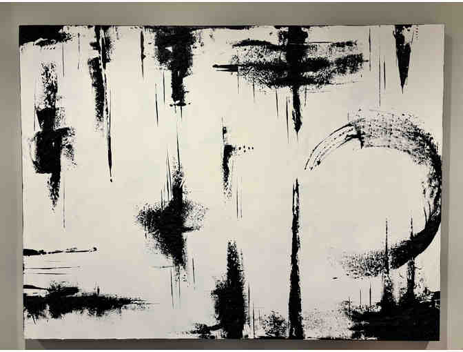 Don't miss out on this one-of-a-kind piece of art by local artist, Lindi Gold! Originally from Cape Town, South Africa, Lindi created this dynamic black and white abstract art with a multimedia approach - using texture and crystallized mediums to bring depth and dimension to her piece.