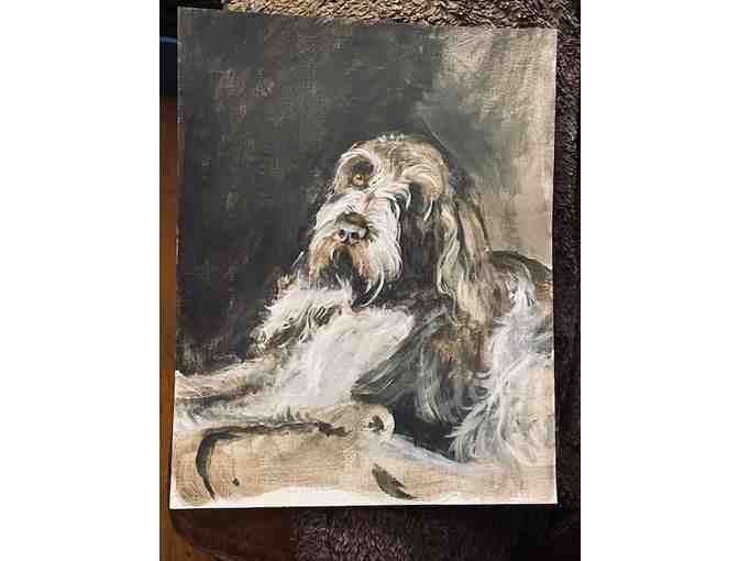 This one-of-a-kind item will be an original painting of a pet of choice! Acrylic on canvas, approx. 11 x 14, based on a photo provided by the winner.
