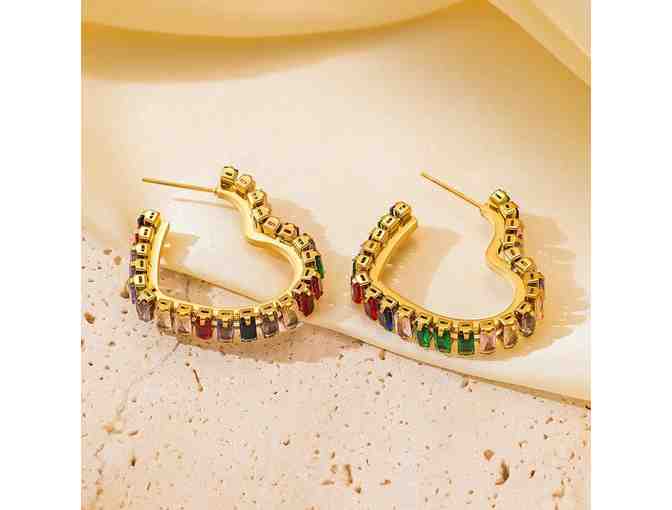 Gold Gemstone Heart Shape Earrings