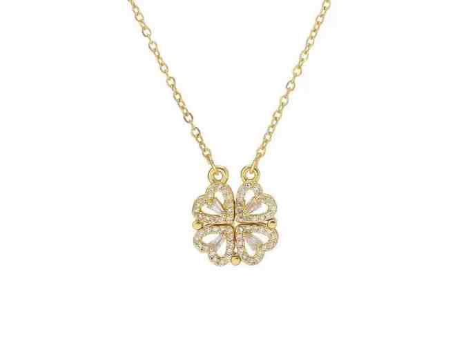 18kt Gold Overlay Four Heart Necklace with Baguette CZ