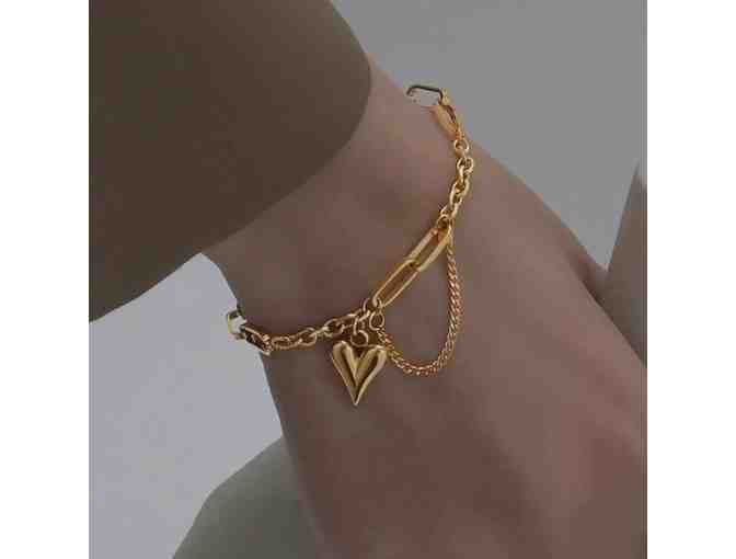 Gold Paper Clip Link and Rolo Style Bracelet with Heart