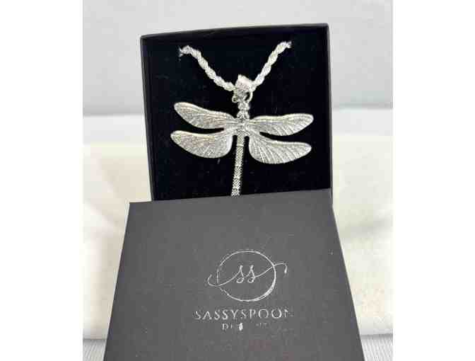 - Dragonfly Necklace by Sassy Spoons Designs -- Handcrafted silver necklace, moulded and poured with care