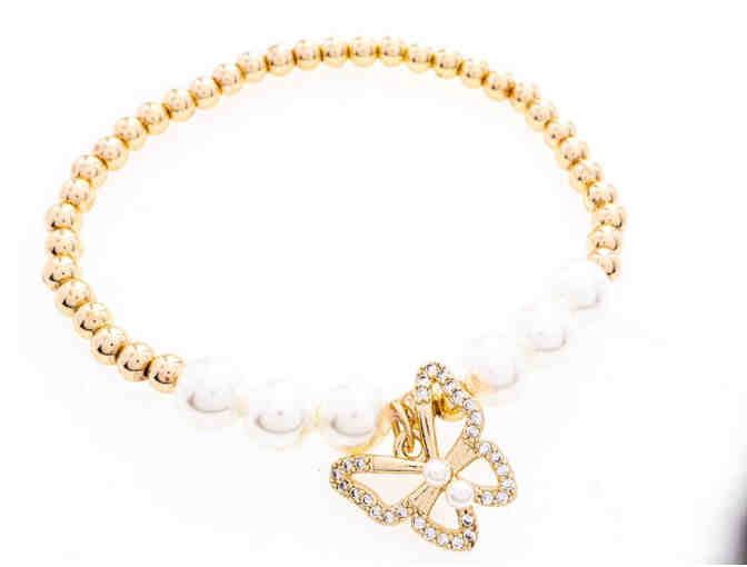 18kt Brazilian Gold Overlay Flex Gold Bead & Pearl Bracelet with Butterfly
