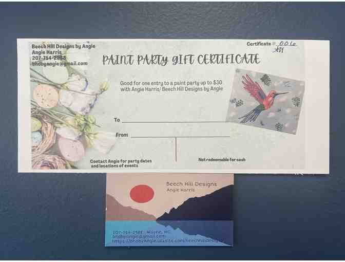 Beech Hill Designs $30 Paint Party Certificate For One