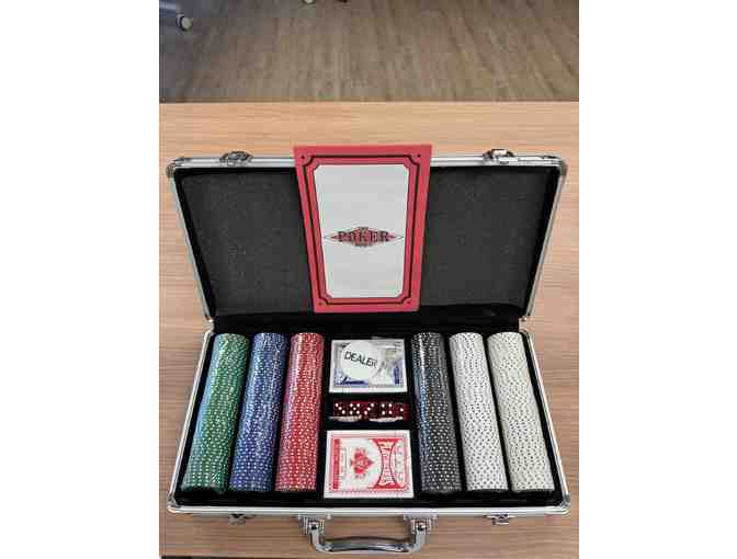Ready for game night? This complete poker set comes in a stylish aluminum case and includes chips, two decks of cards, and dice. It's perfect for playing with friends and family!