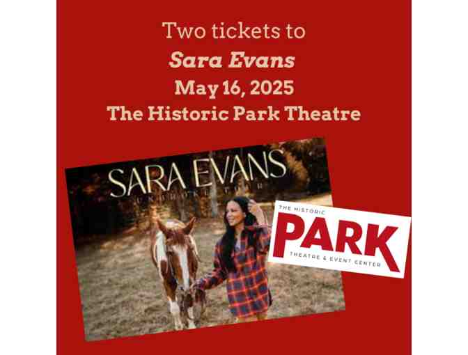 Two tickets to an evening with Sara Evans live at The Historic Park Theatre in Cranston, RI. Friday May 16th at 8 pm.