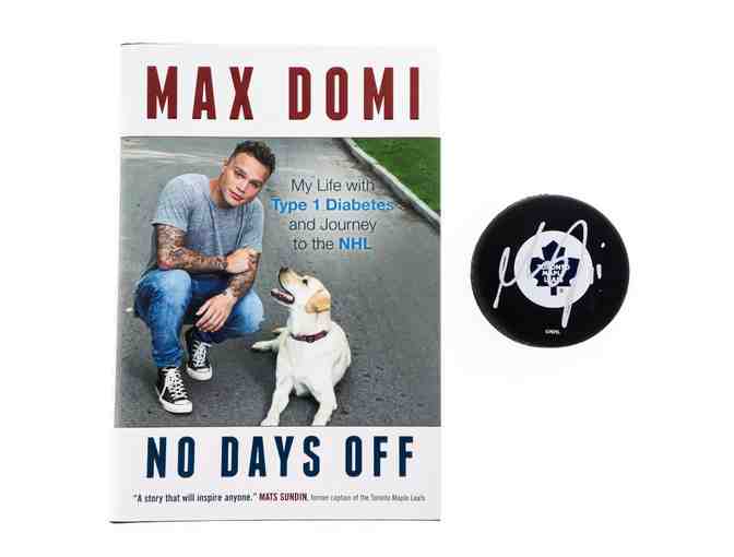 Toronto Maple Leafs - Puck Autographed Max Domi + "NO DAYS OFF" Book.