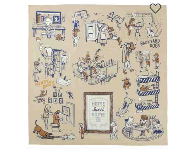 A cotton kitchen towel featuring a "Home Sweet Home" sentiment with all-over dog-themed designs. Machine-washable.