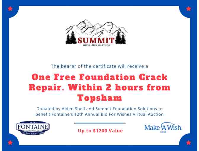 Summit Foundation $1,200 for Foundation Crack Repair