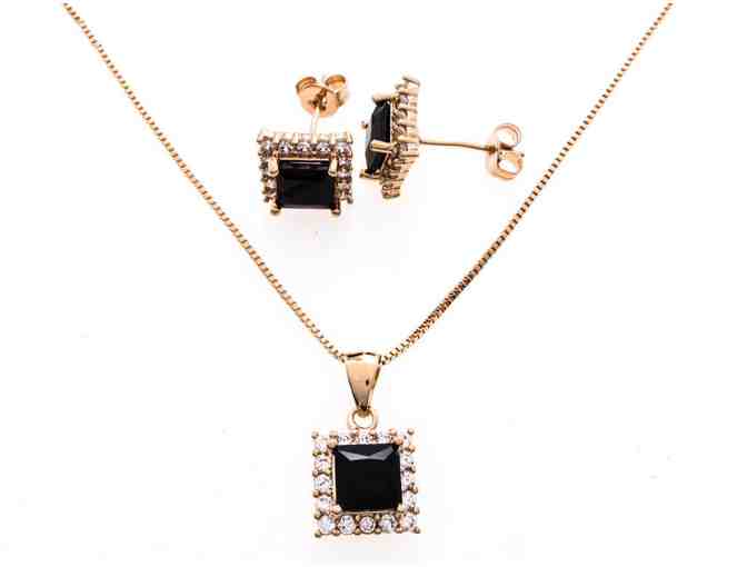 18kt Brazilian Gold Overlay Earrings and Necklace Set - Square Gemstone with Halo Swarovski Elements