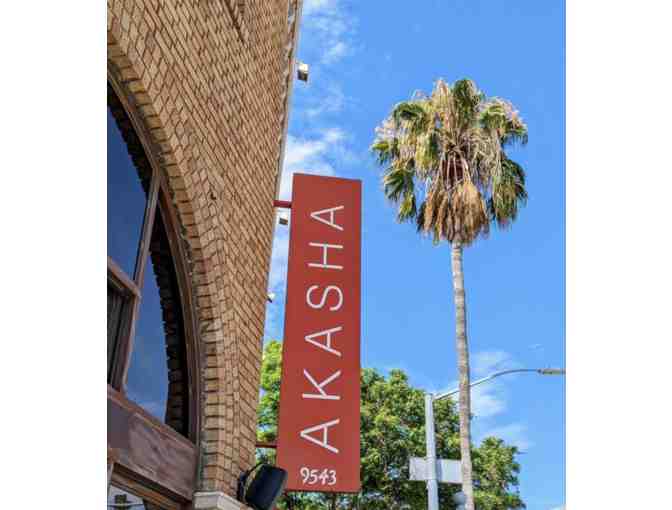 You are bidding on a $100 gift card to Akasha in Culver City, a bustling spot that prepares New American farm-to-table cuisine in a rustic-chic setting.