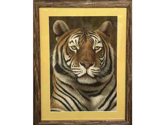 Own a stunning limited edition giclee titled "Pride of India" by renowned wildlife artist and conservationist Andrew Bone. This captivating portrait of a tiger is framed and measures 21" x 27". Hand-signed by the artist, this piece showcases Bone's exceptional photorealistic style.
