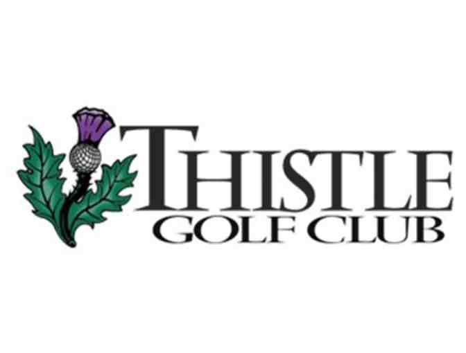 An 18-hole round of golf for four with carts and range balls at Thistle Golf Club in Sunset Beach, NC. Foursome is not allowed to be split in two. Golf appropriate attire is required.