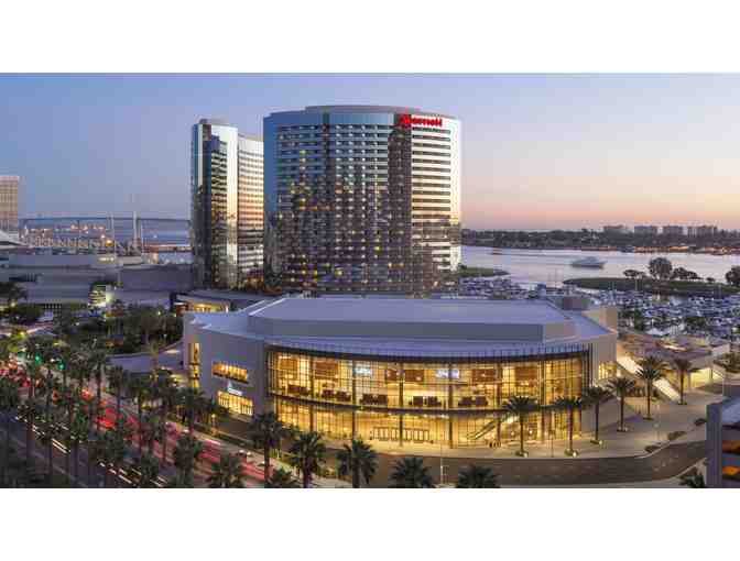 Enjoy a 2 Night Stay in a Bayview Room at the Marriott Marquis San Diego Marina. This item also includes Complimentary Self- Parking, Waived Resort Fee and two breakfast buffets for 2 people each day. Relax and rewind at the hotel pool and spa, spend time downtown, or take a trip to the beach. Enjoy all San Diego has to offer!
