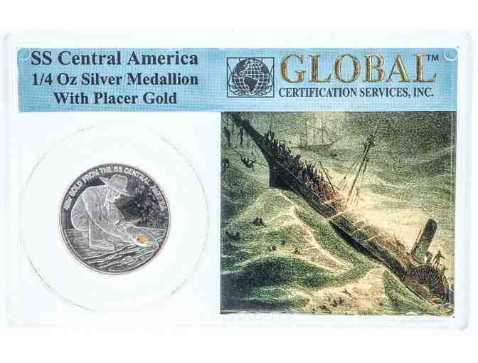 SS Central America 1/4 OZ Silver Medallion With Placer Gold
