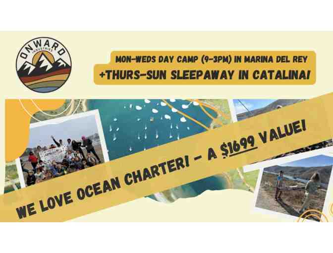Onward's hybrid day camp + Catalina sleepaway adventure starts with a Mon-Weds day camp (9am-3pm) in Marina del Rey followed by a Thursday-Sunday Catalina sleepaway at our beautiful Onward Oceans Center in Cat Harbor, Catalina.