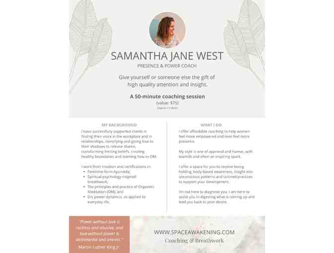 I offer affordable coaching to help women feel more empowered and men feel more presence.