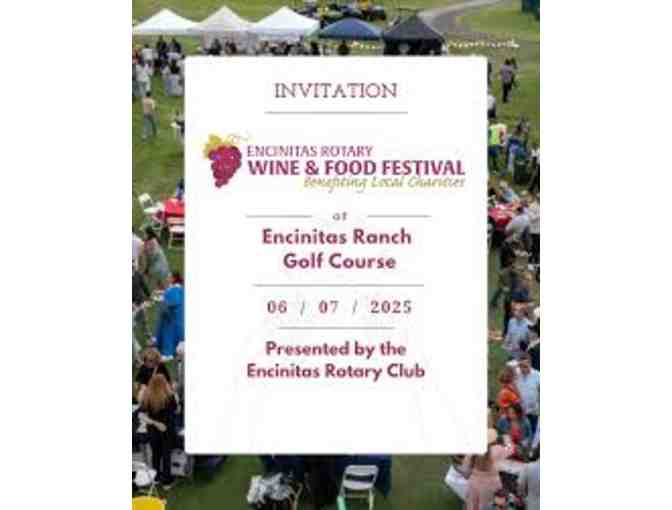 Featuring here two (2) tickets to the Encinitas Wine and Food Festival on June 6, 2025.