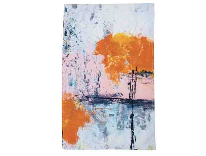Replicated from original art created at the Friendship Heart Gallery in downtown Lancaster, PA by artists with intellectual disabilities and autism, this cotton kitchen towel features abstract tree designs. Machine-washable.