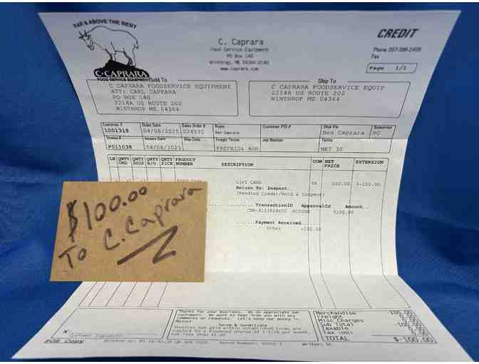 $100 Gift Card to C. Caprara Food Service Equipment