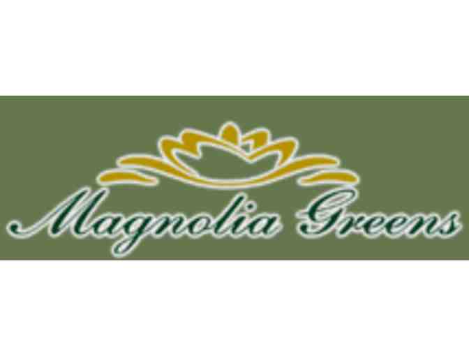 An 18-hole round of golf for four at Magnolia Greens Golf Course in Leland, NC.  Foursome is not allowed to be split in two.  Golf appropriate attire is required.