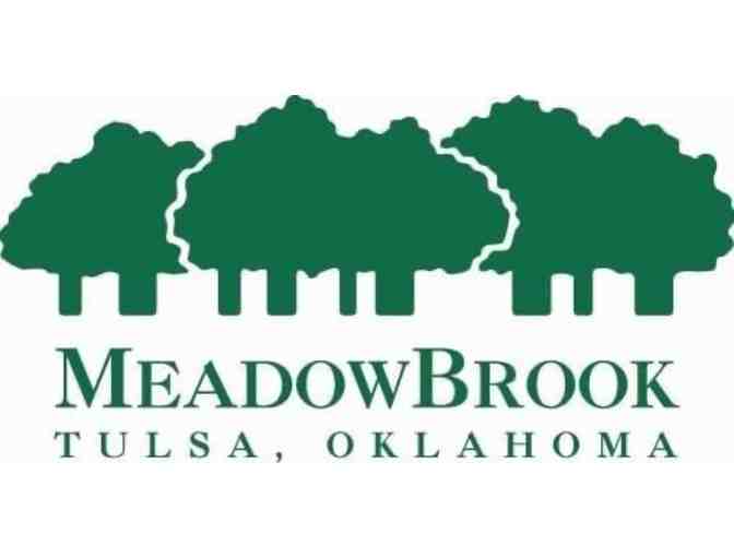 An 18-hole round of golf for four with carts at Meadowbrook Country Club in Tulsa, OK. Foursome is not allowed to be split in two. Golf appropriate attire is required.