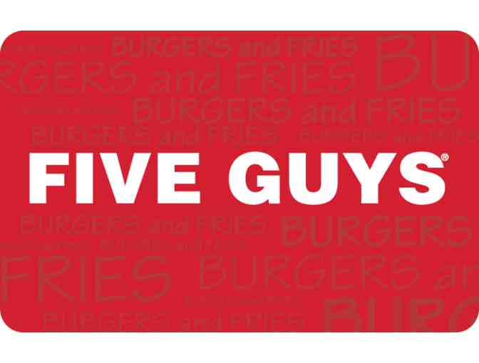 Winning bidder will receive five (5) gift cards, each valued at $5, for a total of $25 to spend at Five Guys.