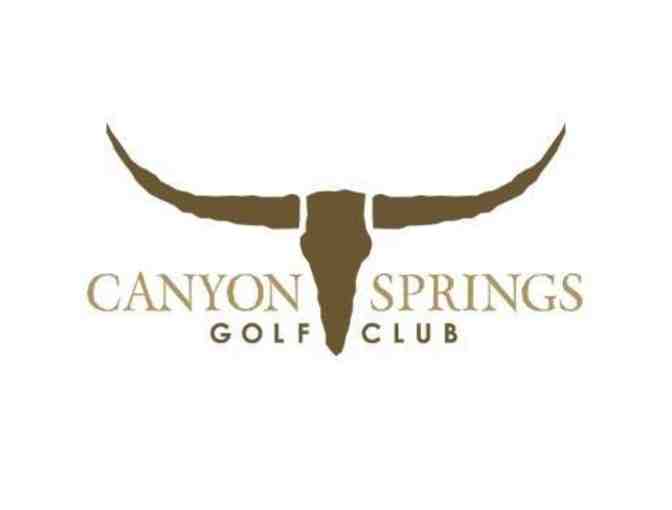 An 18-hole round of golf for four with carts at Canyon Springs Golf Club in San Antonio, TX. Foursome is not allowed to be split in two. Golf appropriate attire is required.