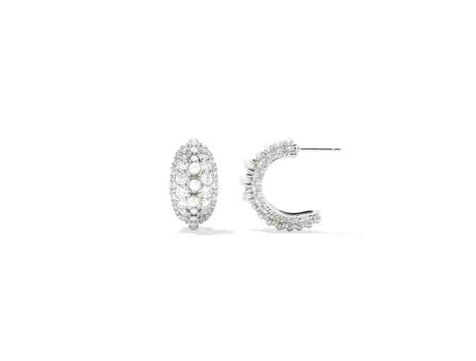 Elevate your jewelry collection with the Krista Silver Hoop Earrings in White Mix from Kendra Scott. These bold hoops feature linear arrangements of crystals and cultured freshwater pearls, offering an undeniable sparkle that's impossible to ignore.