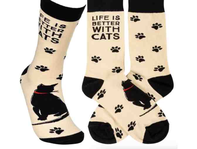 These colorful socks feature woven designs with coordinating "Life Is Better With Cats" sentiment. Cotton, nylon, spandex. One size fits most.