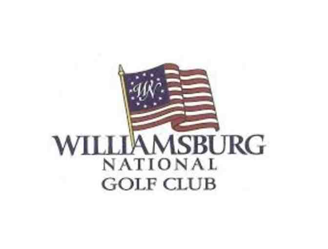 An 18-hole round of golf for four with carts at Willamsburg National in Willamsburg, VA. Foursome is not allowed to be split in two. Golf appropriate attire is required.