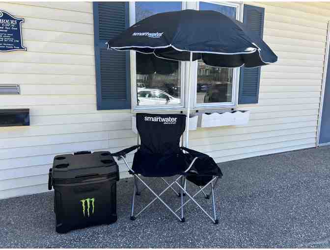 Monster Cooler with Smartwater Chair & Umbrella