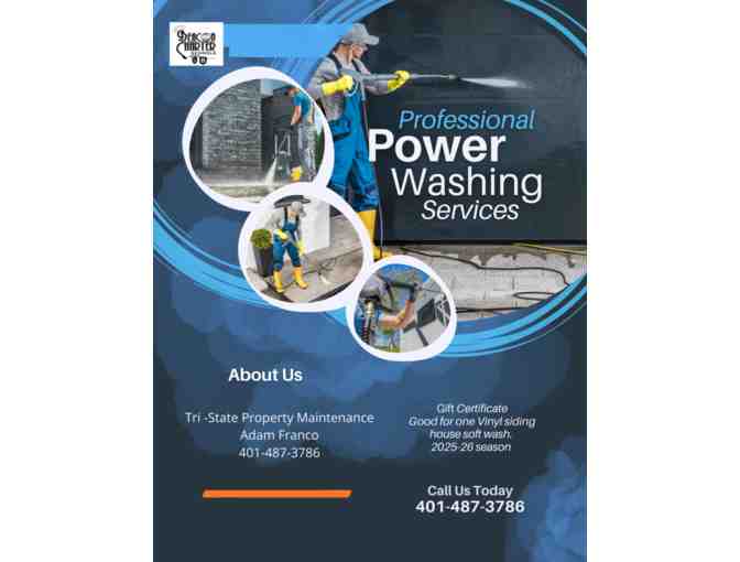 - Gift certificate for one vinyl siding house soft wash for 2025-26 Season