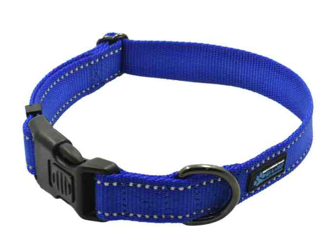 The NEO Dog Collar is a heavy duty, reflective locking nylon clasp dog collar. The collars are 2mm thick and very strong and made for the largest of dogs. Its quality nylon webbing contains reflective stitching for improved nighttime visibility. It features a lockable nylon clasp which prevents an accidental releasing of the latch when grabbing the collar.