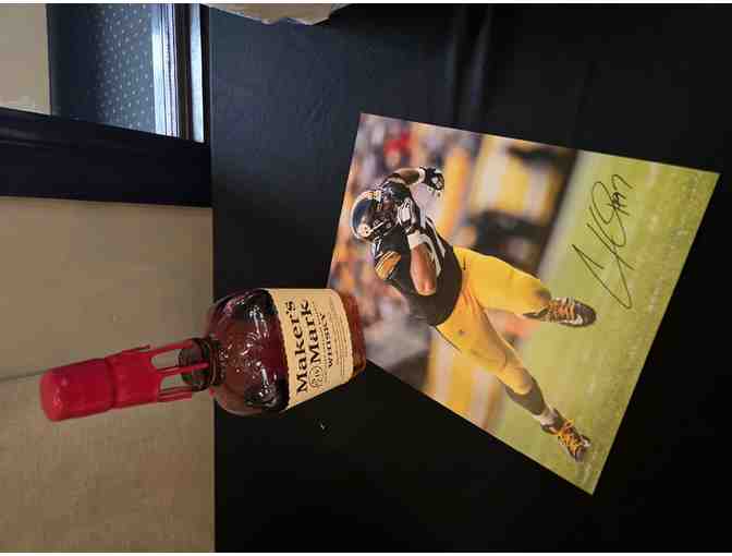 #97 Cameron Hayward autographed photo with a bottle of Makers Mark