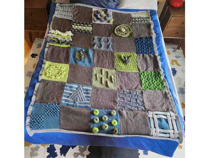 Hand knitted "fidget blanket"