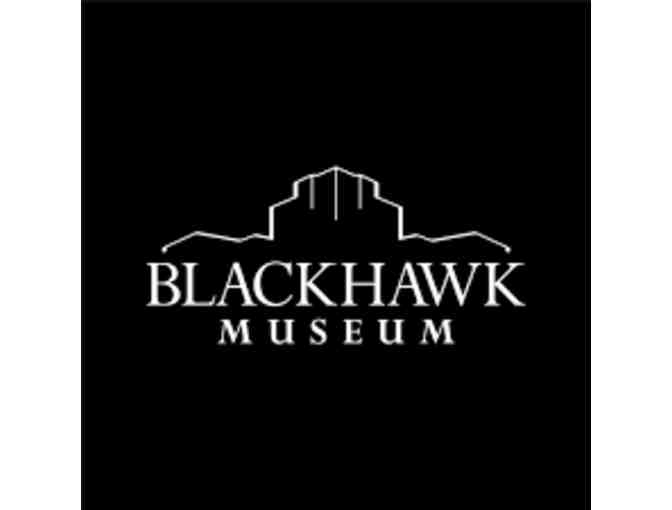 Four pack of Tickets to the Blackhawk Museum. Where history, art, and culture converge across six unique exhibits. Offering enriching experiences through The Don William's Automobile Gallery, The Spirit of the Old West, Art of Africa, Pat's Compacts, Into China, and World of Nature.