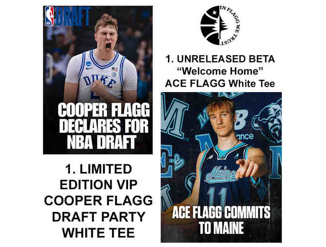 1) "Cooper Flagg Limited Edition Draft Shirt" which will only be available to VIP members 6/25/25 at the Official Draft Party at Rivalries and Falmouth. Open to the public, BUT, 75 VIP tickets will go on sale in May for $100ea. That VIP ticket includes this shirt. This shirt is priceless.