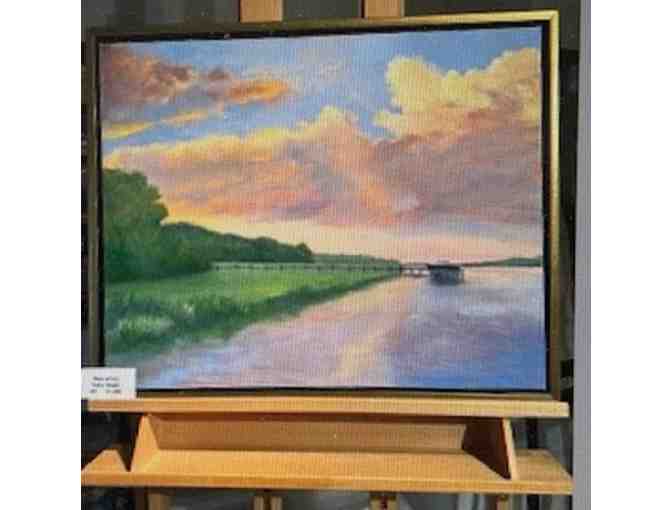 Capture the spirit of the South Carolina Lowcountry with "River of Fire," a luminous 26" x 32" oil on canvas by acclaimed Palmetto Bluff artist Nancy Dwight. Known for her evocative use of color and masterful depiction of light, Nancy’s work celebrates the rich landscapes and waterways that define coastal Carolina. This vibrant, framed piece embodies her signature style—blending bold movement with tranquil beauty—to create an artwork that draws the viewer in and invites quiet reflection.