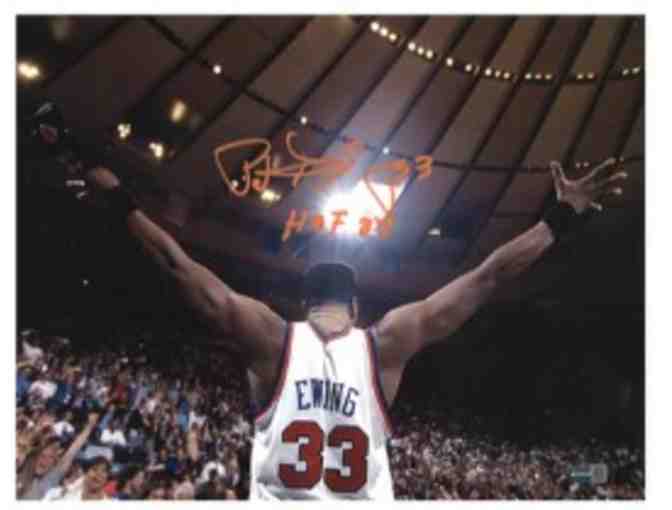 Patrick Ewing New York Knicks Autographed In Orange 16x20 Arms Out Facing Crowd Photo (CX Auth) - With Frame
