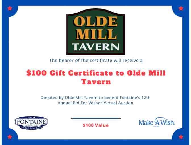 Olde Mill Tavern $100 Gift Certificate
